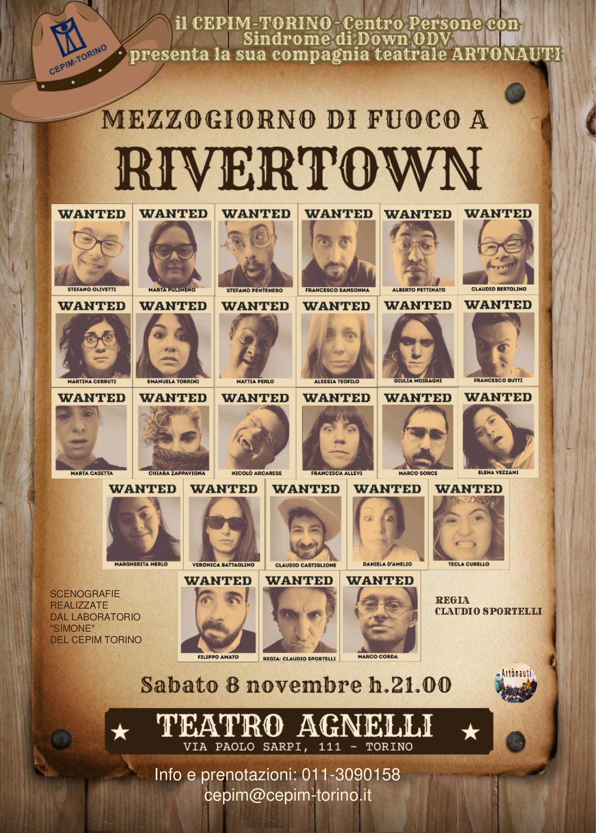 Lo spettacolo “Mezzogiorno di fuoco a Rivertown” è prodotto dal CEPIM Torino, con le scenografie realizzate dal laboratorio “Simone”.